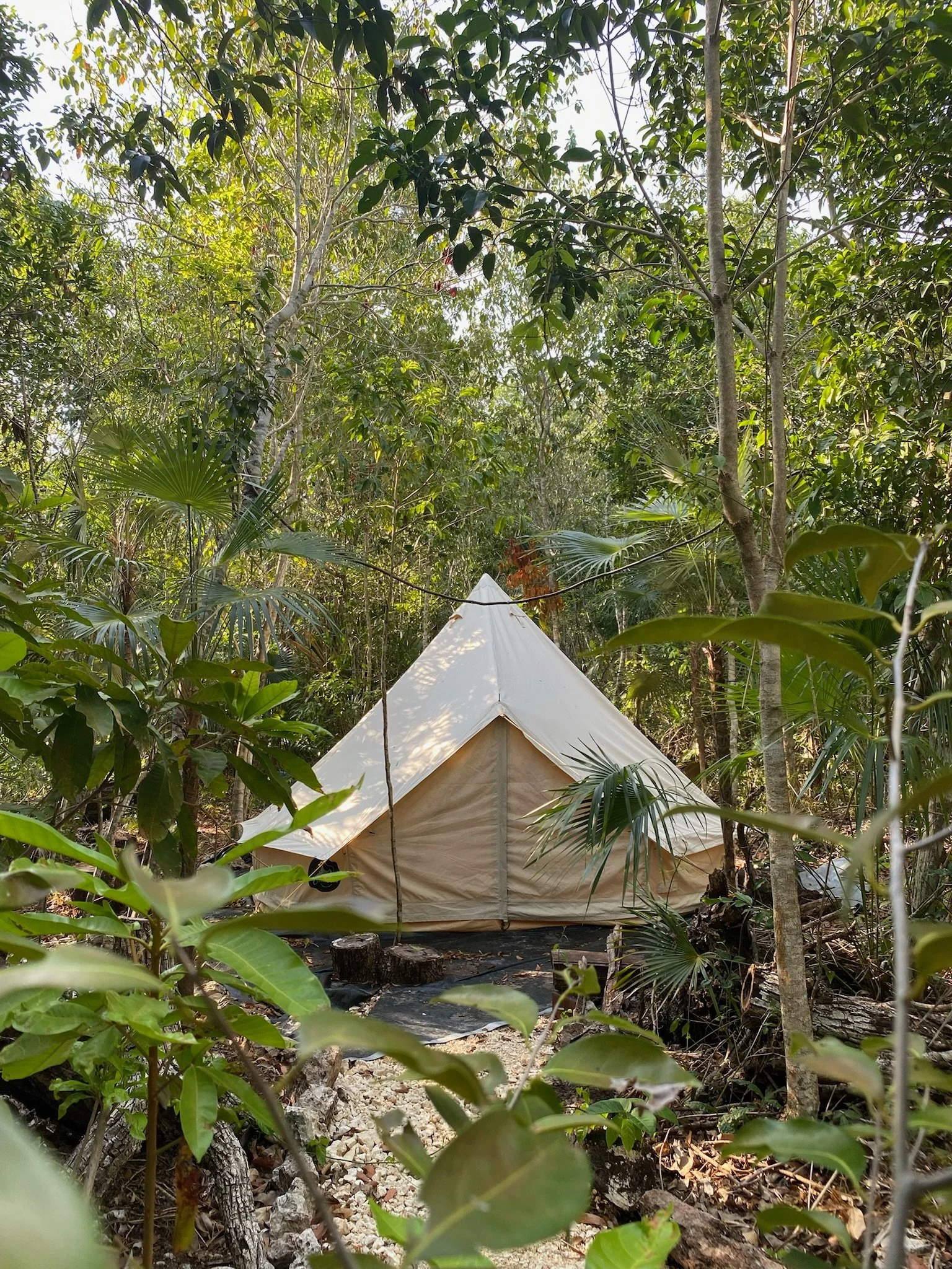 For those seeking a nature-immersed experience with added retreat capacity, Casa Arkaana offers two spacious glamping bell tents, available upon request. Nestled within the Mayan jungle and surrounded by the sounds of nature, these tents provide a peaceful, grounded stay while maintaining comfort and simplicity.